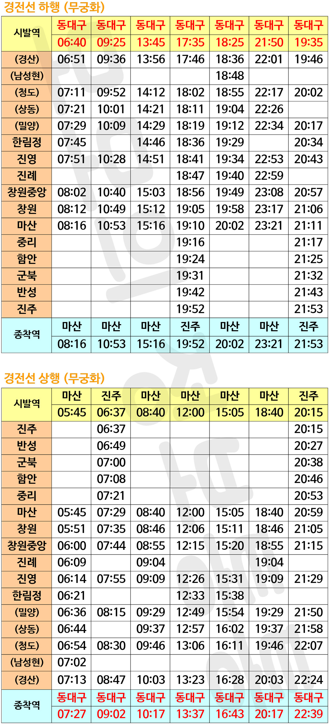 (시발역: 동대구 / 종착역: 마산, 진주)