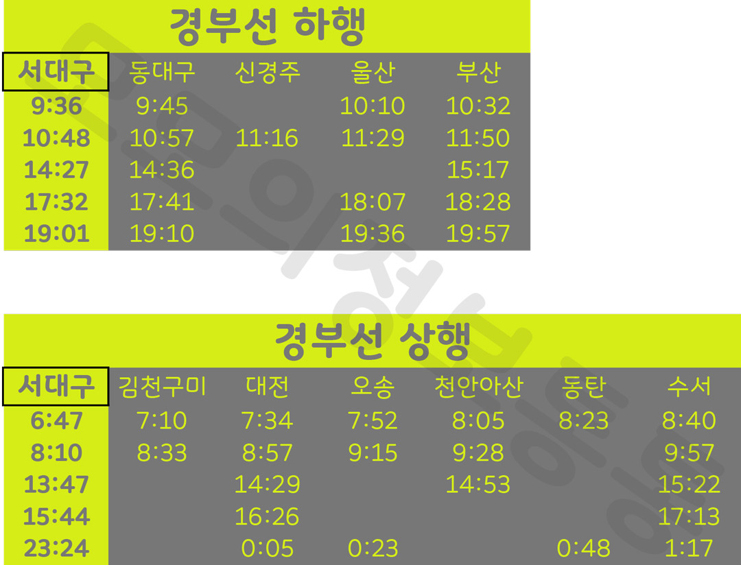 오늘은 새로 개통한 서대구역의 기차 시간표와 요금, 주차장 등의 정보를 요약해 정리해보았습니다.