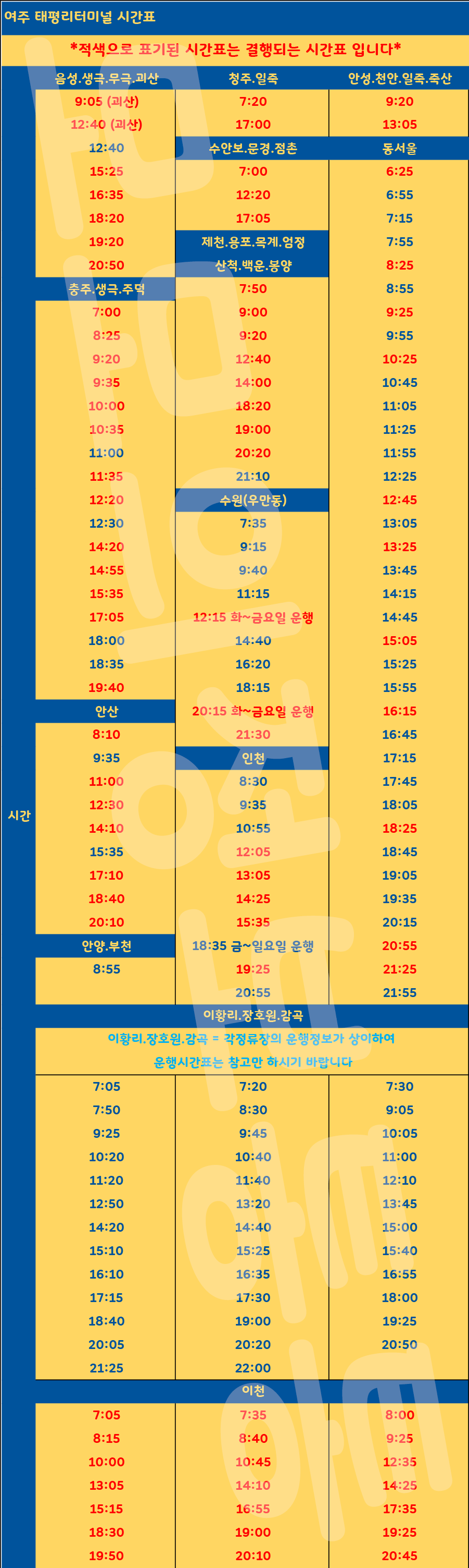 오늘의 정보는 여주 태평리터미널의 버스시간표 등의 정보를 알아봅니다.