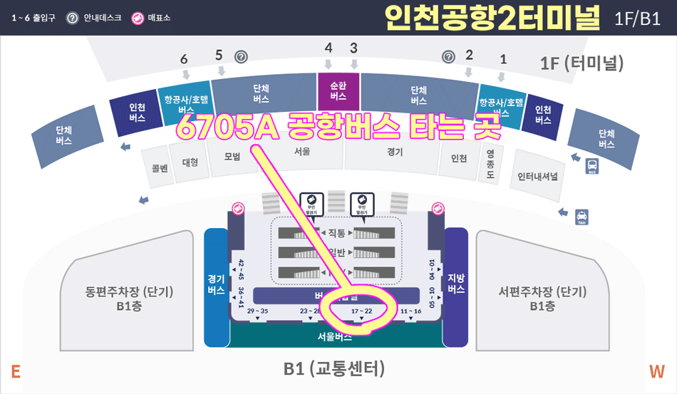 워커힐호텔/잠실방면 ↔ 인천공항 리무진 6705A 버스 시간표, 노선, 요금, 소요시간, 승차권 구매 방법 등의 정보를 요약하여 보시기 쉽게 정리하였습니다.